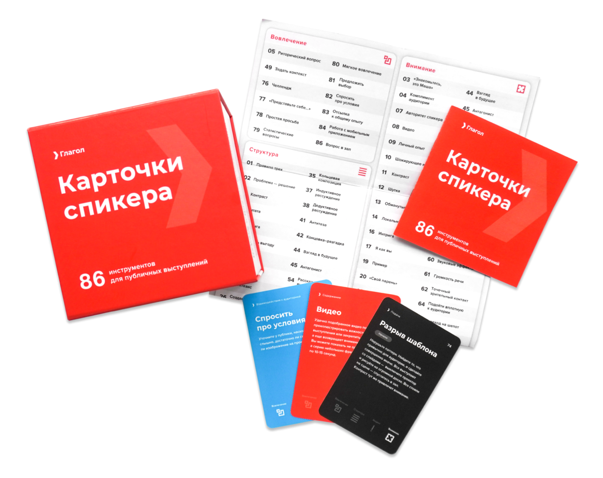 «Глагол» — это бюро публичных выступлений, которое готовит людей к презентациям, лекциям и конференциям, обучает целые корпоративные отделы. Фишка ребят — делать каждое выступление в продуктовом подходе с заботой об аудитории. Мы разработали для бюро новый фирстиль. Самый кайф этого кейса — в тесной работе с заказчиком.